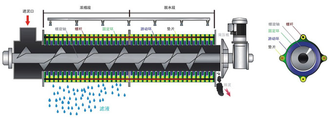 疊螺機(jī)脫水原理: